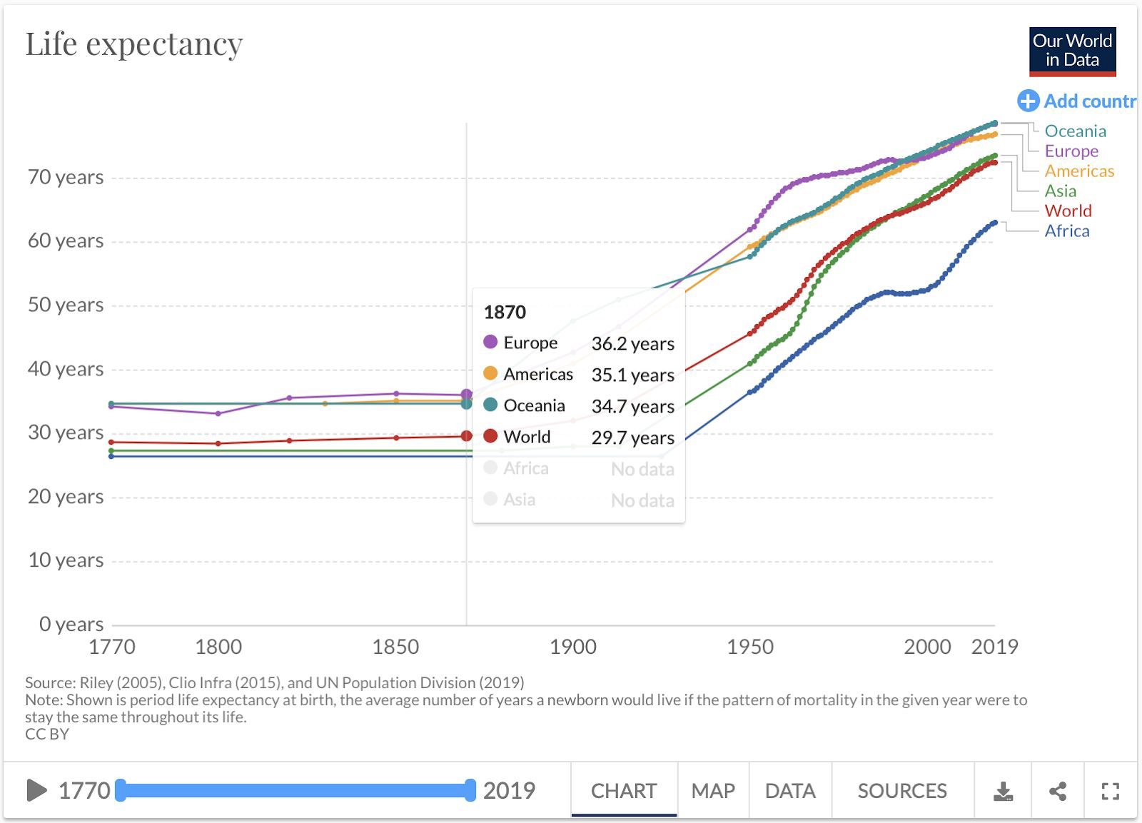 Related to my research on death and dying in the Anthropocene, I have begun to think critically about the category of life expectancy , as well as its histories, logics, and foreclosures. Although most societies have some conception of what constitutes a “good” death, our dominant cultural ideal has become a death that happens in old age while asleep. This imaginary has only become more achievable over the past two centuries: since 1840, life expectancy has grown globally at around three months with each passing year due to medical and technological advances (Riley 2001; World Health Organization 2011). Functioning as a summary statistic, life expectancy has become a key metric of demography and undergirds both medical literature and the life insurance industry as a series of ratios and equations. However, not just a value-neutral prediction or collection of averages, life expectancy is the product of a historically-specific regime of valuation created with techno-economic practices to calibrate the differential length and worth of human life. These kinds of calculations take place at the macro-level of the population, but also have profound effects on the individual psyche, structuring orientations to the future that one is entitled to a certain amount of life. (This is incredibly evident in language as well, such as a life being “cut short.”) To what extent is this related to neoliberal, capitalist notions of progress and failure that have resulted in an ever-expanding, non-stop world that “disavows its relation to the rhythmic and periodic textures of human life” (Crary 2013)?